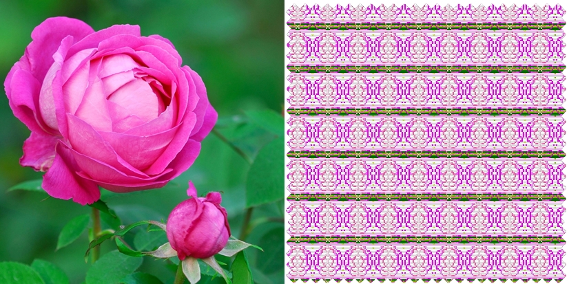 แนวคิดของลายทอนี้ได้มาจากการนำรูปทรงและสีของดอกกุหลาบพันธุ์จุฬาลงกรณ์มาใช้ เป็นดอกของเจ้าดารารัศมีซึ่งเป็นพระธิดาของพระเจ้าอินทวิชยานนท์ ทรงถวายตัวเป็นเจ้าจอมในพระบาทสมเด็จพระจุลจอมเกล้าเจ้าอยู่หัว หลังจากในหลวงรัชการที่ 5 เสด็จสวรรคต เจ้าดาราฯได้กราบทูลขอต่อพระบาทสมเด็จพระมงกุฎเกล้าเจ้าอยู่หัว ร.6 ขอกลับมาประทับที่เชียงใหม่เมื่อต้นปี 2457 และสิ้นพระชนม์เมื่อวันที่ 9 ธันวาคม 2476 โดยชีวิตบั้นปลายของเจ้าดาราฯ อยู่กับงานเกษตร ทรงปลูกต้นไม้และดอกไม้หลายอย่าง โดยเฉพาะดอกไม้ ทรงโปรดกุหลาบมาก ถึงกับสั่งพันธุ์กุหลาบจากประเทศอังกฤษเข้ามาปลูกที่เชียงใหม่ ในบรรดากุหลาบที่ทรงปลูก มีกุหลาบสีชมพูต้นหนึ่งที่โปรดมากที่มากสุด จึงทรงตั้งชื่อว่า “จุฬาลงกรณ์” เพื่อเป็นพระบรมราชานุสรณ์แด่ในหลวง ร.5 พระราชสวามีอันเป็นที่รัก