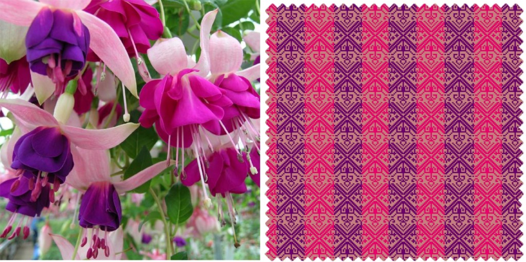 เป็นการออกแบบลายผ้า 12 ตะกอ 32 ไม้ถีบที่ได้แนวคิดมาจากดอกโคมจีน เป็นดอกไม้ที่นำมาปลูกในจังหวัดเชียงใหม่ มีความสวยงามและเป็นดอกไม้ฤดูหนาว มีมากบนดอกอินทนนท์ มีสีสันที่ดดดเด่น คือสีชมพูและม่วง นำเอาเอกลักษณ์คือเป็นดอกที่ห้อยหัวเหมือนโคมไฟ นำมาออกแบบเป็นลวดลายในผ้าที่สวยงามเข้ากันได้อย่างลงตัว